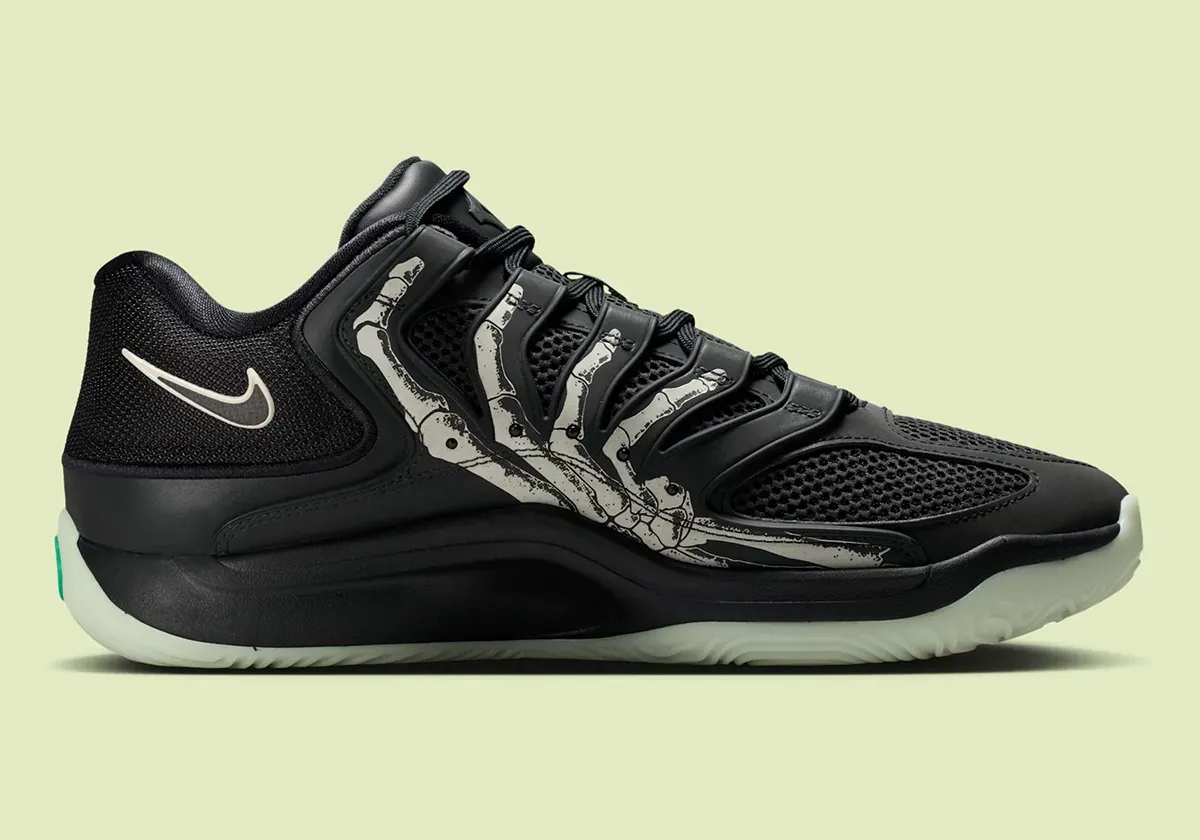 Le compte est bon pour Nike qui n’a plus qu’à préparer les citrouilles après avoir dévoilé tous ses coloris « Halloween » de ses différents joueurs NBA signature. Devin Booker a eu le sien, Ja Morant aussi, et même Wemby via la Nike GT Hustle 3. C’est au tour de Kevin Durant et sa KD 18 de rejoindre cette belle équipe avec une version pour le moins originale.