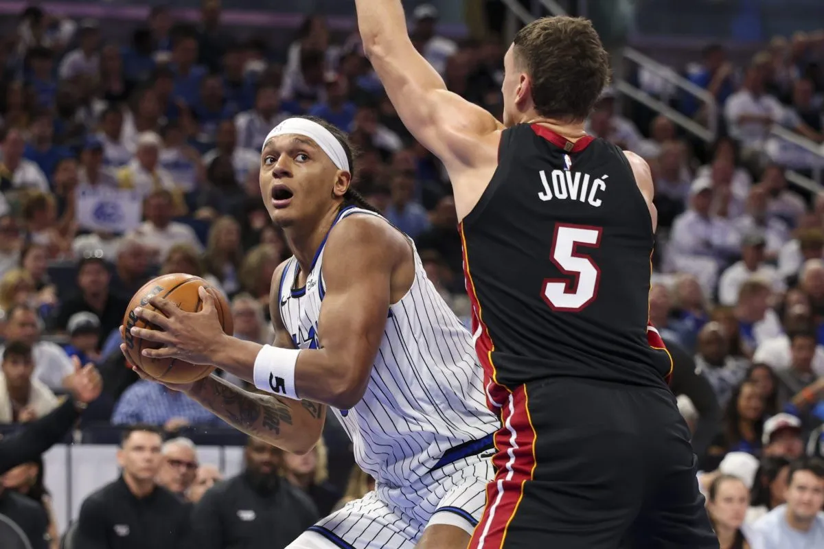 Entouré de remplaçants à l’impact certain (Kel’el Ware, Jaime Jaquez, Simone Fontecchio), Norman Powell redonne une dizaine de points d’avance aux siens. Jusqu’à ce que la doublette Paolo Banchero – Wendell Carter Jr. ne fasse parler sa puissance dans la peinture pour renverser la vapeur.