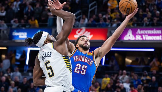 Le Belge profite des minutes laissées par Jalen Williams, blessé et absent, pour briller. Face aux Rockets, il avait inscrit 16 points, et à Indiana, il a fait encore mieux avec 26 points (9/19 au shoot et 8/8 aux lancers-francs). Son record en carrière, tout simplement.