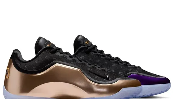 Cette fois, c'est la dernière étape de la carrière de LeBron James qui est mise à l'honneur avec un coloris « Chosen One » aux couleurs des Lakers. La tige se distingue en effets par deux parois à effet métallique, en doré d'un côté, et violet de l'autre. L'ensemble est complété par une partie supérieure en noir, sur laquelle la couronne du King et sa signature ressortent en doré, respectivement sur l'empeigne et la languette. La LeBron 23 a également misé sur le « packaging » de chacun de ses modèles et ce coloris « Chosen One » ne déroge pas à la règle.