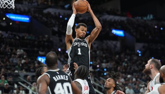 – Victor Wembanyama impérial dans la raquette. Les Raptors ont été largement dominés au rebond puisqu’ils n’en ont pris que 20 contre 44 pour San Antonio dont 15 captés par le seul Victor Wembanyama. En attaque, le Français s’est d’abord montré avec son “lay-up” en 360° pour signer un match presque parfait à 7 sur 8 aux tirs. Pour tenter de le contenir, les Raptors ont multiplié les fautes, sans succès. Porté par les chants “MVP” du Frost Bank Center, “Wemby” affiche un parfait 10/10 aux lancers-francs et finit cette soirée avec 24 points, 15 rebonds et 1 contre en 30 minutes de jeu.