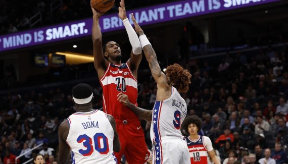 | 2024-25 | WAS | 67 | 27:04 | 39.4 | 30.8 | 67.9 | 1.9 | 4.6 | 6.5 | 2.4 | 2.2 | 0.7 | 1.7 | 1.5 | 13.0 |
