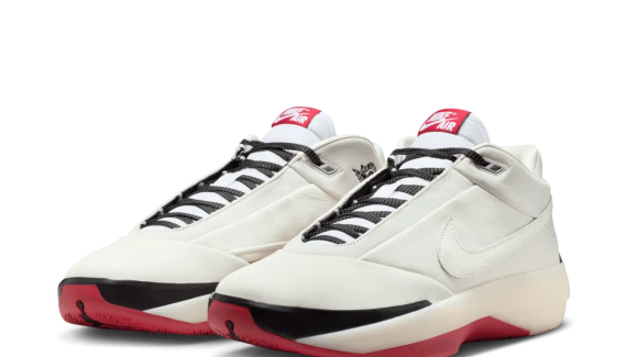 La tige est intégralement en cuir blanc, avec une superposition latérale pour faire ressortir le « Swoosh », tandis que la base avant et des lacets en noir apparaissent en noir. On retrouve surtout le logo « Nike Air » en blanc sur fond rouge sur la languette. L’ensemble repose sur une semelle entre blanc, noir et rouge. Pour rappel, la semelle intermédiaire est composée d’une mousse Zoom X équipée d’un amorti Zoom Strobel, combinant ici deux des technologies les plus innovantes de Nike.