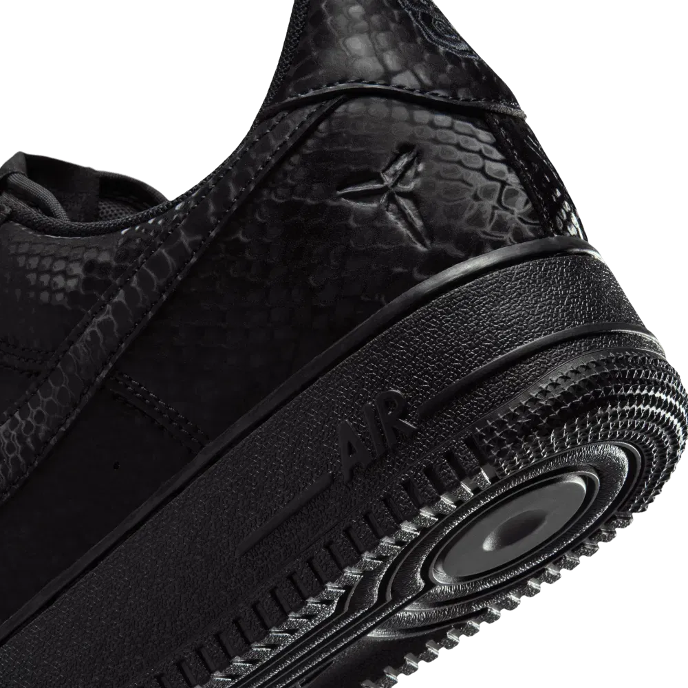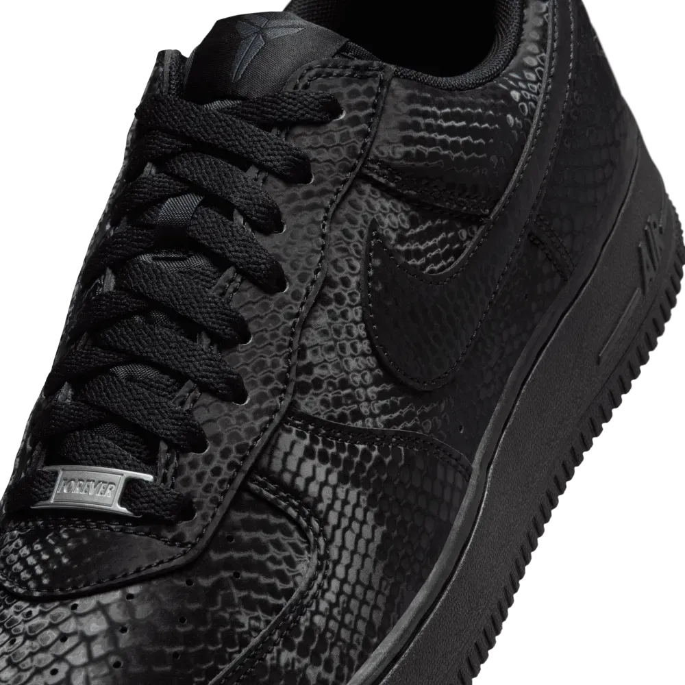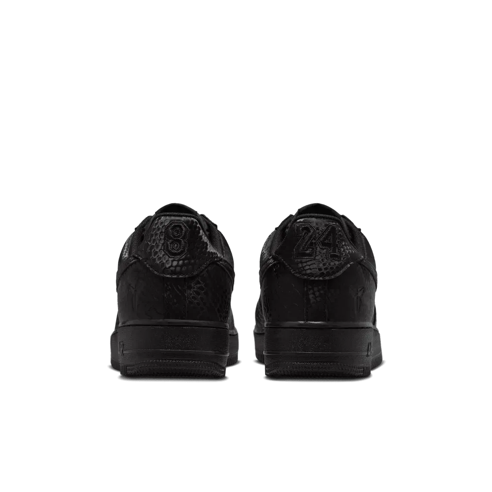 Nike s'apprête à inonder le marché de sa nouvelle collection « Air Force 1 x Kobe Bryant » en hommage au Black Mamba. Pour accompagner la Air Force 1 Low Kobe Protro « Court Purple », on retrouve depuis aujourd'hui sur le marché français la Kobe Bryant x Air Force 1 Low « Triple Black ».