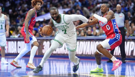 Tyrese Maxey et VJ Edgecombe frappent à 3-pts et dans la dernière minute, il n'y a plus que deux points d'écart. Puis un, après un lancer-franc manqué de Jaylen Brown et un lay-yp de Tyrese Maxey. Jaylen Brown, encore lui, commet une faute offensive et Philadelphie a une balle de match.