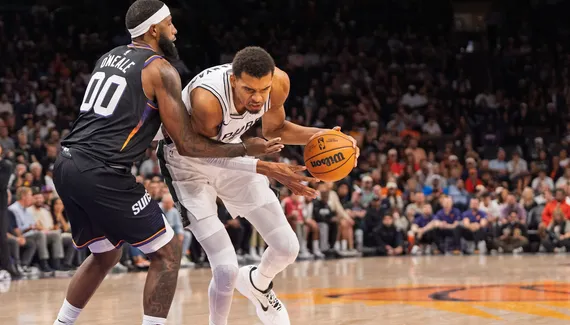 Invaincus avant leur déplacement en Arizona, les Spurs de Victor Wembanyama ont été accueillis par un festival longue distance des Suns pour entamer la rencontre. Devin Booker, Ryan Dunn (17 points, 5 rebonds), Grayson Allen (17 points), Royce O'Neale (11 points, 6 rebonds, 4 passes), et Collin Gillepsie (15 points, 4 passes) marquent tous au moins un 3-points en premier quart temps et Phoenix fait la course en tête (31-24).
