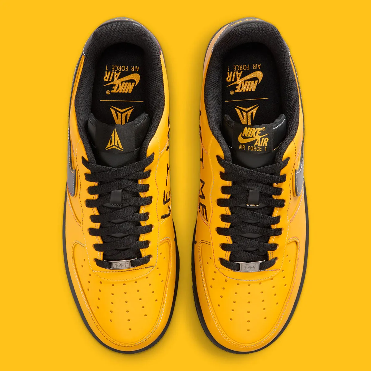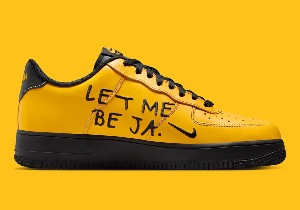 La tige en cuir jaune assortie d’un « Swoosh » noir comporte en effet l’inscription « Let Me Be Ja » sur le talon et son logo sur la languette droite, comme une réponse à sa franchise suite à sa suspension !