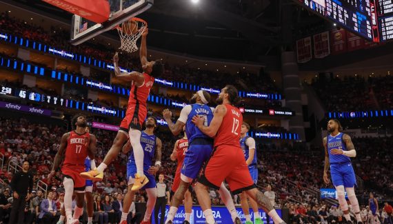 Durant quelques minutes en deuxième quart-temps face à Dallas, Amen Thompson a fait le spectacle avec plusieurs dunks de suite. Notamment un alley-oop après avoir manqué un lancer-franc. Il rate sa tentative mais parvient à prendre son rebond offensif avec un impressionnant bond. Il sauve la balle, l’envoie à Alperen Sengun, qui lui renvoie l’ascenseur avec une passe et ça se termine avec un dunk arrière.