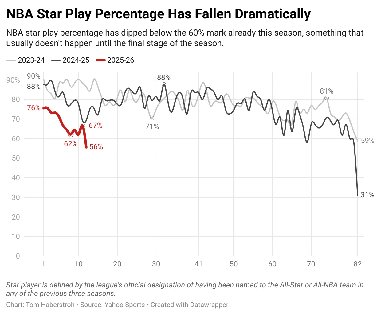 « Notre staff médical estime que l’usure, la vitesse de jeu, le rythme et les kilomètres parcours jouent un rôle dans ces blessures », a-t-il précisé. >« Dans toute la ligue, tout le monde a compris qu’il est plus facile de marquer si l’on prend l’adversaire de vitesse et qu’on sort en transition. Mais lorsque tout le monde fait ça, les matchs sont beaucoup plus rapides. Tout le monde doit couvrir sept mètres de surface, car tout le monde peut tirer à 3-points. On a toutes les données. Les joueurs courent plus vite et plus loin qu’auparavant. On essaie de faire de notre mieux, mais on a pratiquement un match tous les deux soirs. Ce n’est pas facile ».