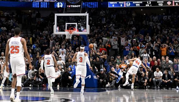 Dépourvus de temps-mort, les Mavericks se retrouvent alors obligés d’effectuer la remise en jeu depuis leur ligne de fond. P.J. Washington trouve alors Dereck Lively II au milieu du terrain qui file la gonfle à Brandon Williams. Le meneur déborde Landry Shamet pour inscrire un panier censé envoyer le match en prolongation.