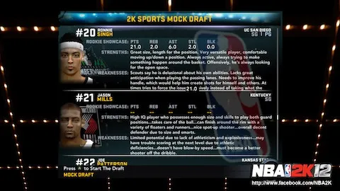 Si le concept reste inchangé, l’édition 2K12 apporte son lot de nouveautés en matière de réalisme et de vie du joueur. Ainsi, au lieu de 3 matches, vous aurez seulement un seul match, appelé le «Rookie Challenge» (se déroulant au MSG), afin de faire vos preuves et ainsi montrer ce dont vous êtes capable devant les scouts NBA.