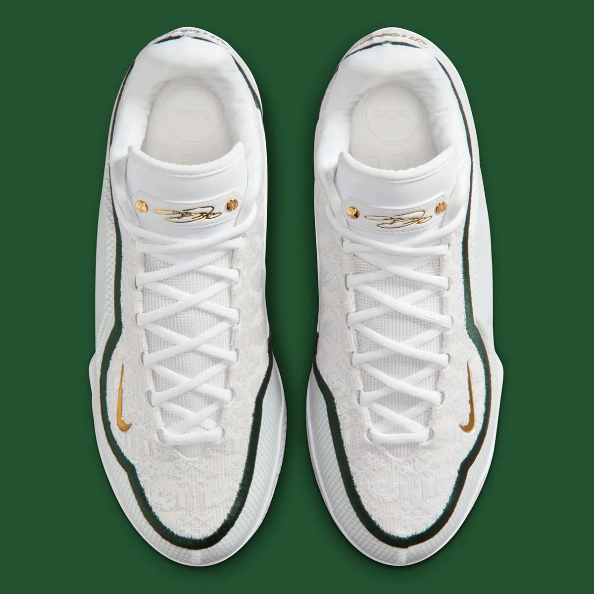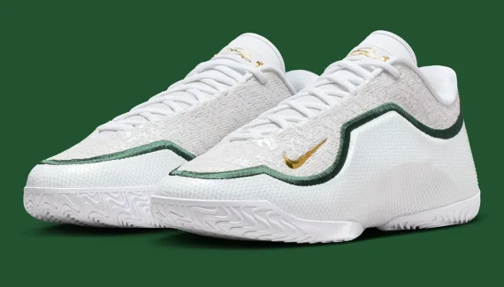 Ce prochain coloris renvoie cette fois à l’époque de LeBron James lycéen, à la St. Vincent-St. Mary High School d’Akron, sa ville natale, où il a joué de 1999 à 2003, avant d’entrer en NBA. La tige blanche est traversée par une bande verte pour dessiner les contours de la couronne du King, reprenant ainsi les couleurs de St. Vincent-St. Mary.