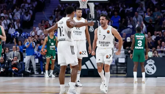 Par son agressivité vers le cercle, Théo Maledon a parfaitement guidé le Real dans un match particulier : Madrid atteint les 100 points avec seulement deux tirs primés inscrits (2/9) et un recours minimal au tir extérieur.