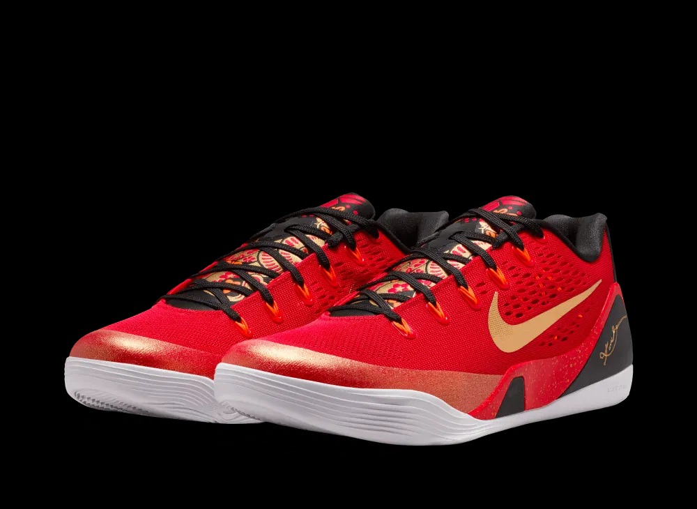 Les relations entre la Chine et la NBA sont plus apaisées, et Nike a fait le nécessaire pour rapprocher les deux sphères en sortant notamment les coloris « Chinese New Year » et « Year of the Mamba » pour habiller la Kobe 5 au cours de la saison dernières. Les deux modèles ont fait un carton, et vu que la version « Chinese New Year » avait été privilégiée pour le marché asiatique, la marque à la virgule a fait un effort pour la remettre au goût du jour pour le marché européen cette année, sur la Kobe 9 Low EM Protro cette fois.