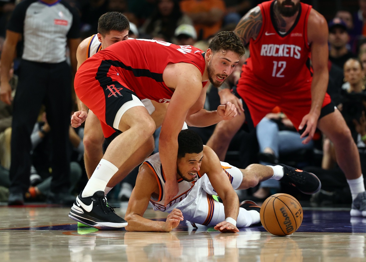 L’activité et les paniers d’Amen Thompson plus un Aaron Holiday décidément adroit de loin vont permettre à Houston de s’imposer logiquement, mais en ayant bien bataillé, sur le parquet des Suns (92-114).