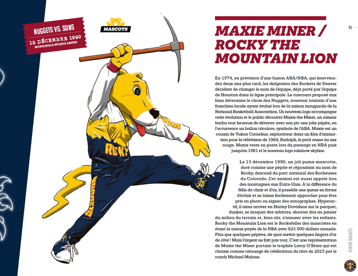 L’une des originalités de « NBA Signatures », c’est la place offerte aux mascottes des différentes franchises. « Quoi de plus iconique qu’une mascotte pour signer l’animation d’une salle de basket », nous demande Vinceau Reculeau. « Je me suis éclaté. Cela fait partie des textes les plus longs. J’ai retrouvé deux personnes qui ont porté des costumes. Le créateur de Hugo des Hornets et du Sam Dunk des Clippers, éphémère mascotte des années 1980. » Plaisir partagé par Adrien Pommepuy : « Je me suis amusé sur les mascottes. J’ai eu de la liberté sur le traitement des images. Pour certaines, on n’a qu’une ou deux photos, donc il fallait imaginer. »