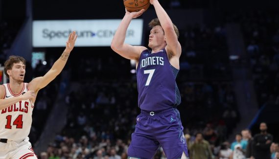 | 2025-26 | CHA | 45 | 32:11 | 48.1 | 42.2 | 89.5 | 1.2 | 4.3 | 5.5 | 3.5 | 2.3 | 0.7 | 2.2 | 0.2 | 18.9 |