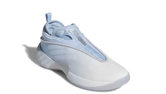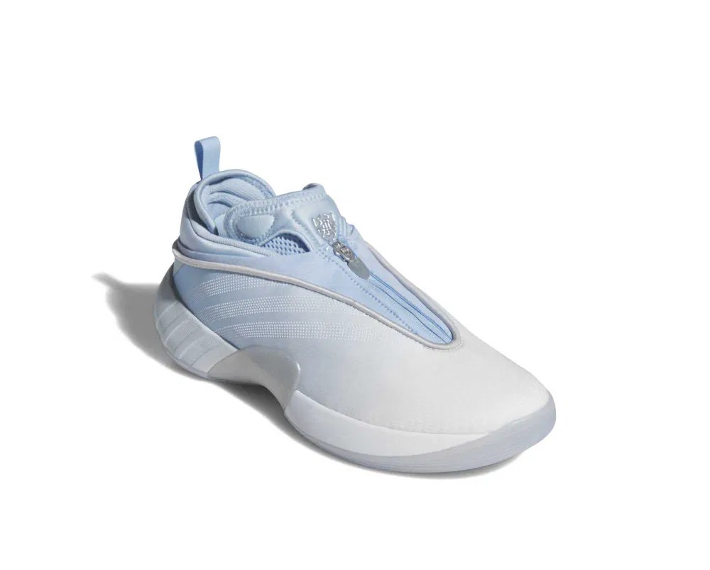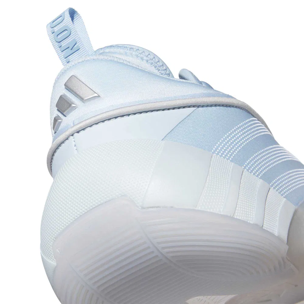 L’arrière des Cavs portera peut-être ce nouveau coloris « Ice Spida » de sa septième chaussure signature, la D.O.N. Issue #7, qu’on retrouve donc dans un style… glaçant ! La tige offre un dégradé allant du blanc au bleu clair. Le logo « Spida » de Donovan Mitchell et les trois bandes d’adidas ressortent en gris métal, tandis que l’ensemble repose sur une semelle blanche, équipée de mousse Lightstrike Pro ultralégère au niveau intermédiaire, et d’un revêtement extérieur en blanc translucide.