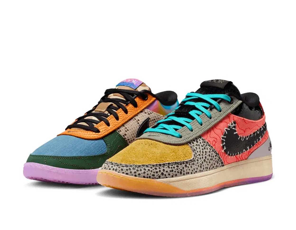 Commercialisée en mars 2024, la Nike Book 1 s’offre ici une sortie en beauté avec un ultime coloris « What The » bariolé qui reprend plusieurs des nombreux coloris déjà sortis. L’ensemble est pour le moins original, et le tout repose sur une semelle agrémentée d’un dégradé aux couleurs des Suns, du orange au violet.