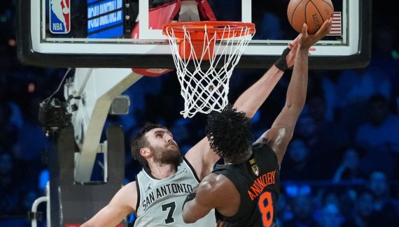 D’abord, ce « circus shot » en fin de première mi-temps où il fait admirer, à nouveau, son hang time sur une tentative de contre de Luke Kornet. Et puis, il y a ce contre sur Devin Vassell en troisième quart-temps. Ce n’est pas le tournant du match, mais petit à petit, les Knicks ont pris l’ascendant sur les Spurs, surtout physiquement.