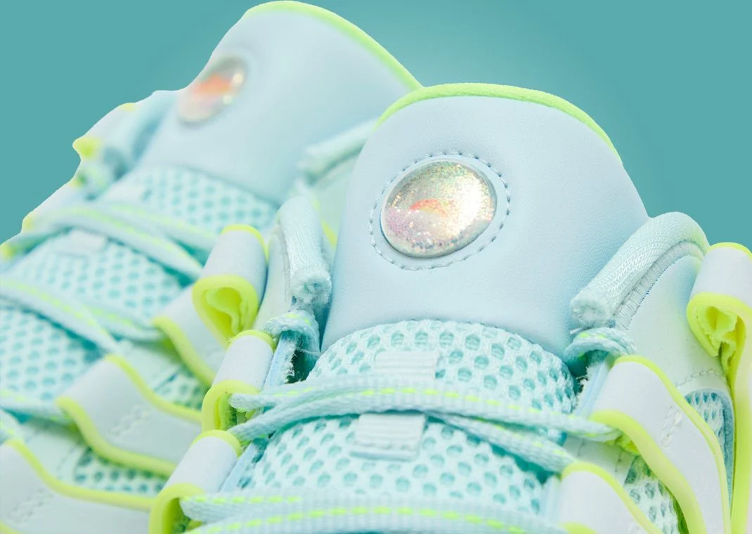 Les touches d’originalité se situent au niveau des finitions, avec ses contours en vert fluo et ses dégradés passant du vert fluo au rose, pour faire ressortir le « Swoosh » latéral ou bien la semelle extérieure. Le résultat final est plutôt réussi pour ce qui sera bientôt le 13e coloris de la KD 18 !