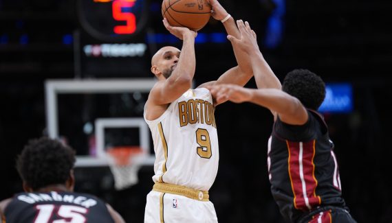 Les Celtics démarrent ce quatrième quart-temps avec un parfait 6/6 de loin, avec un Derrick White toujours intenable, qui en inscrit deux pour permettre à Boston de prendre 14 points d’avance, le plus gros écart du match (110-96). Ce coup de chaud assomme totalement le Heat, qui n’arrive pas à revenir au score.