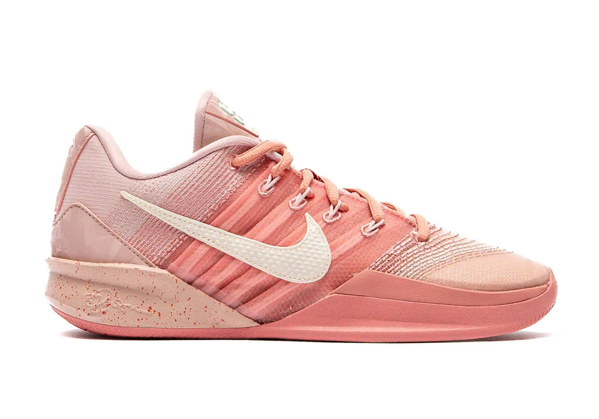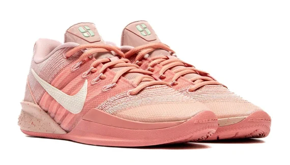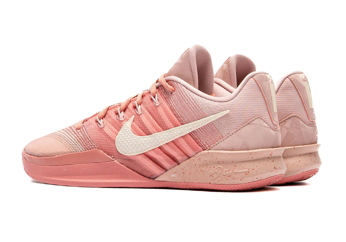 Celui-ci se présente avec une tige entre rose pâle et des tons saumon, dotée de finitions en blanc, pour faire ressortir le « Swoosh » sur l’empeigne et le logo « S » de la shooteuse du New York Liberty sur la languette.