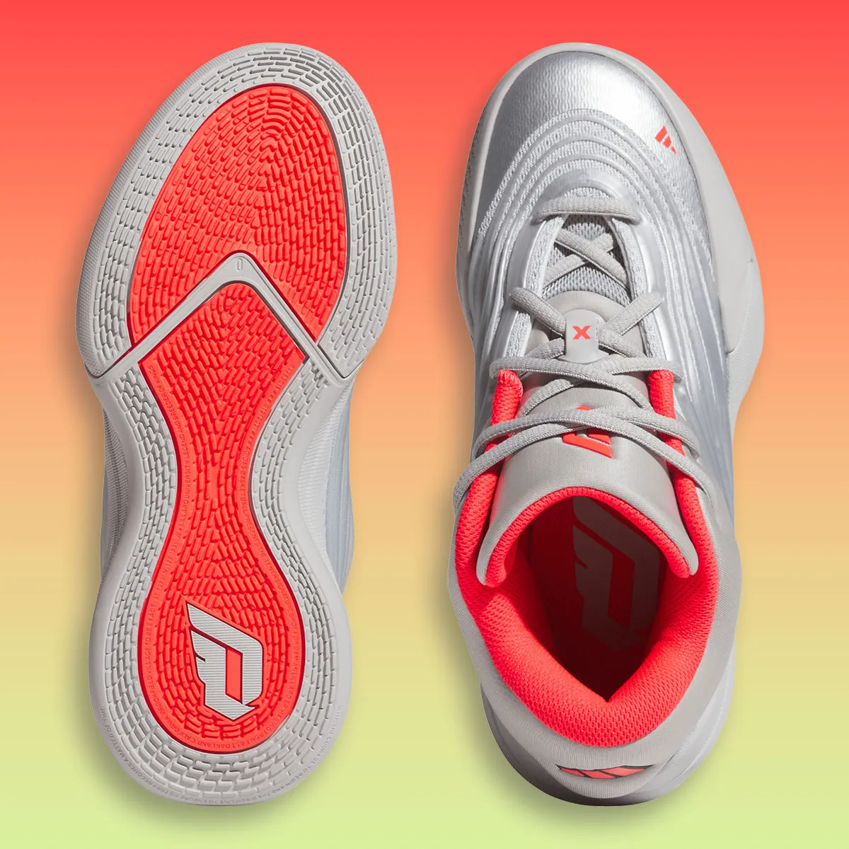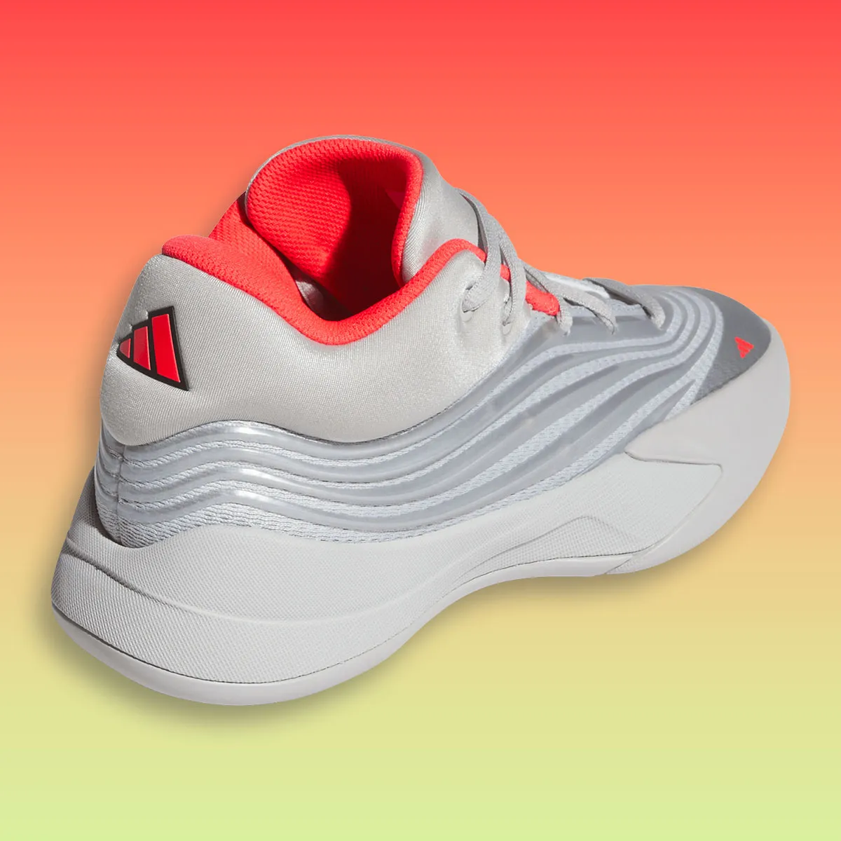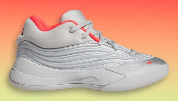 La tige oscillant entre gris et gris métal est assortie de finitions en orange, pour faire ressortir les trois bandes au niveau du talon et à l’avant du pied. Le « X » sur les lacets et le logo « D » de Damian Lillard apparaissent également en orange, tout comme l’intérieur du col.
