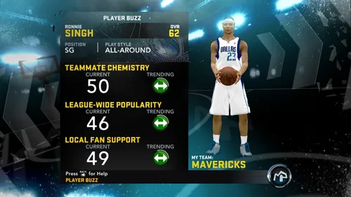Dans le mode “Mon joueur” de 2K12, vous pourrez facilement vous renseigner sur votre popularité au sein de la ligue, de l'entente dans l'équipe, du soutien des fans, etc. grâce au menu “Mon buzz”. Ces éléments sont mesurés sur une échelle allant de 0 à 100. Si vous avez critiqué vos coéquipiers au cours des conférences de presse et que ces derniers vous mettent à part pendant les matchs, jetez un œil à ce menu pour voir ce qu'ils pensent de vous.