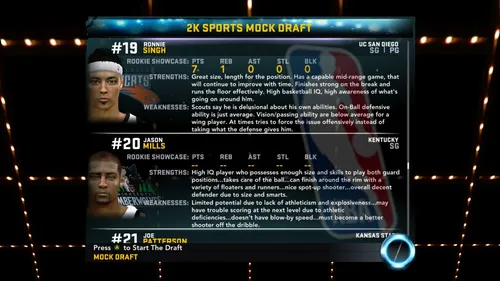 Cependant, votre jeu ne sera pas l'UNIQUE facteur pris en compte. L'une des nouveautés de cette année sont les Interviews pré-draft. Une fois terminé le match de Présentation des rookies, plusieurs managers viendront vous rendre visite dans les vestiaires pour vous poser quelques questions.