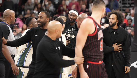 Sauf que ce dunk a provoqué d’abord la colère de Nikola Vucevic et Coby White, puis après le buzzer, s’en est suivie une grosse mêlée générale ! « En général, quand le match est terminé et qu’il reste quelques secondes, tu fais juste défiler le chrono », a rappelé Vucevic. « J’imagine que Giannis était énervé par cet article qui disait que les Bulls ne voulaient pas le récupérer dans un échange, alors il a voulu faire passer un message. Et voilà… »