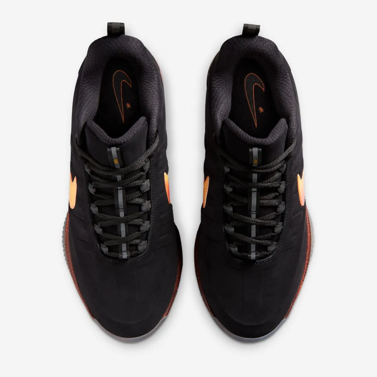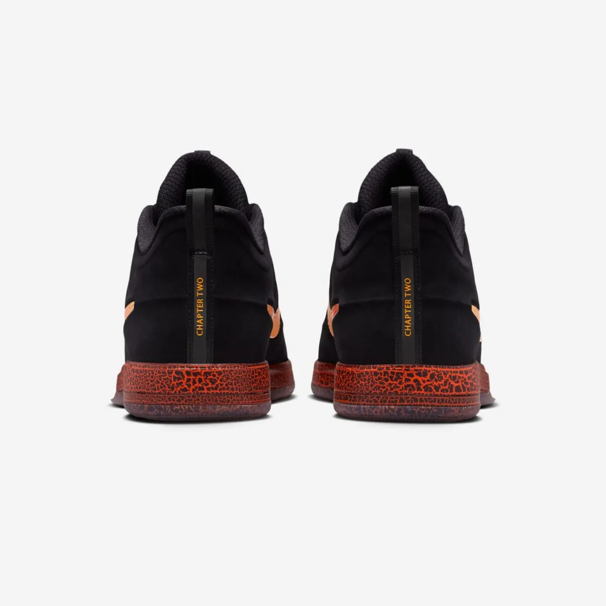 Pour son tout premier coloris, Nike a opté pour la Book 2 « Rising » qui envoie du très lour avec sa base en noir contrastée par un « Swoosh » habillé d’un dégradé allant du jaune à l’orange. On retrouve également la mention « Chapter Two » à la verticale au niveau du talon et une semelle extérieure bleu translucide.