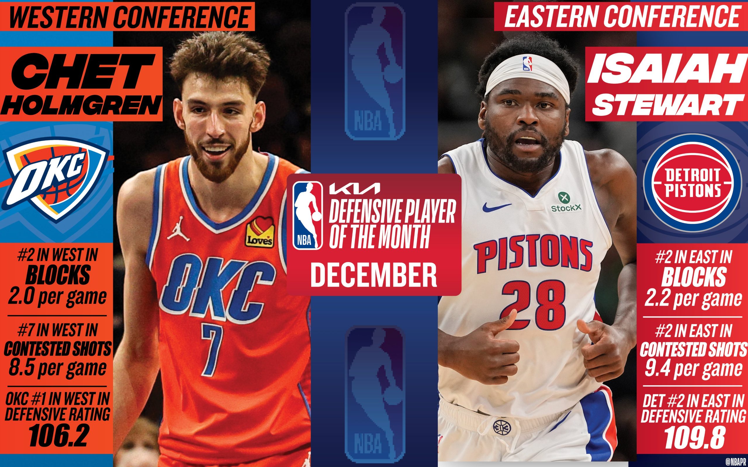 Le Thunder étant la meilleure défense NBA, et de très loin, c’est encore un joueur d’Oklahoma City qui est ainsi désigné « Défenseur du mois » dans la conférence Ouest, puisque Chet Holmgren succède à Cason Wallace !