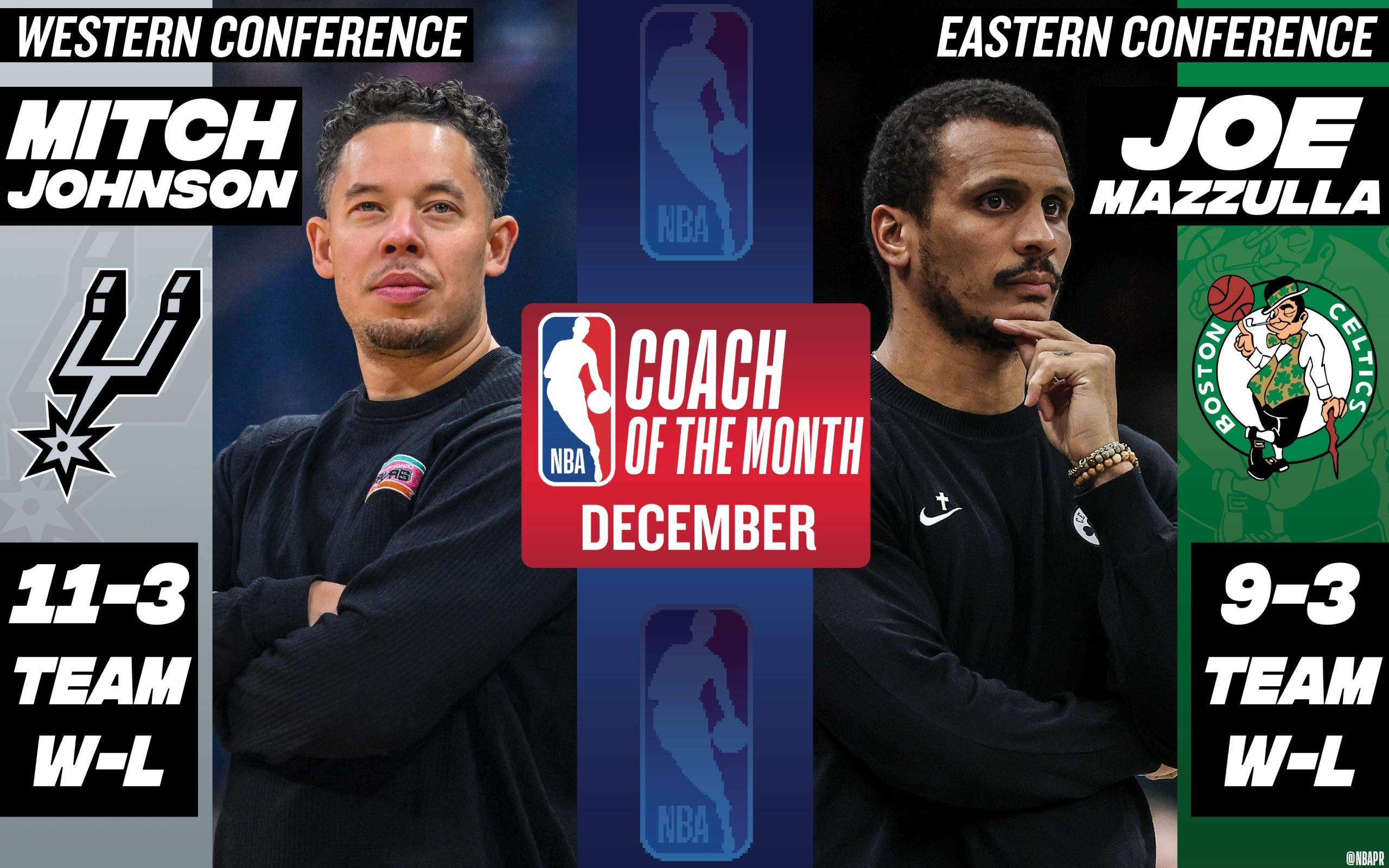 À l’Ouest, Mitch Johnson décroche ainsi son premier trophée de « Coach du mois » avec 11 victoires pour 3 défaites à la tête des Spurs, une finale en NBA Cup et trois succès face au Thunder qui ont marqué les esprits.