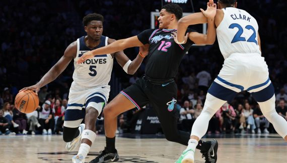 Lancés par un Anthony Edwards toujours aussi brûlant en attaque, les Timberwolves font la course en tête en première mi-temps, n’étant handicapés que par leurs pertes de balle et un banc qui n’est pas au niveau de celui du Heat. Le Heat qui, même dominé au rebond par Rudy Gobert, s’accroche collectivement et reste au contact à la pause, malgré une adresse en berne (56-50).