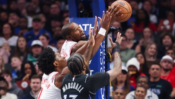 Sur la possession suivante, dans le premier quart-temps du déplacement des Rockets à Dallas, la star texane a cherché à lui répondre avec un tir à mi-distance. Un tir réussi, mais annulé car Kevin Durant a laissé traîner sa jambe, faisant chuter PJ Washington. Faute offensive, et déjà une deuxième faute personnelle pour l’intéressé.