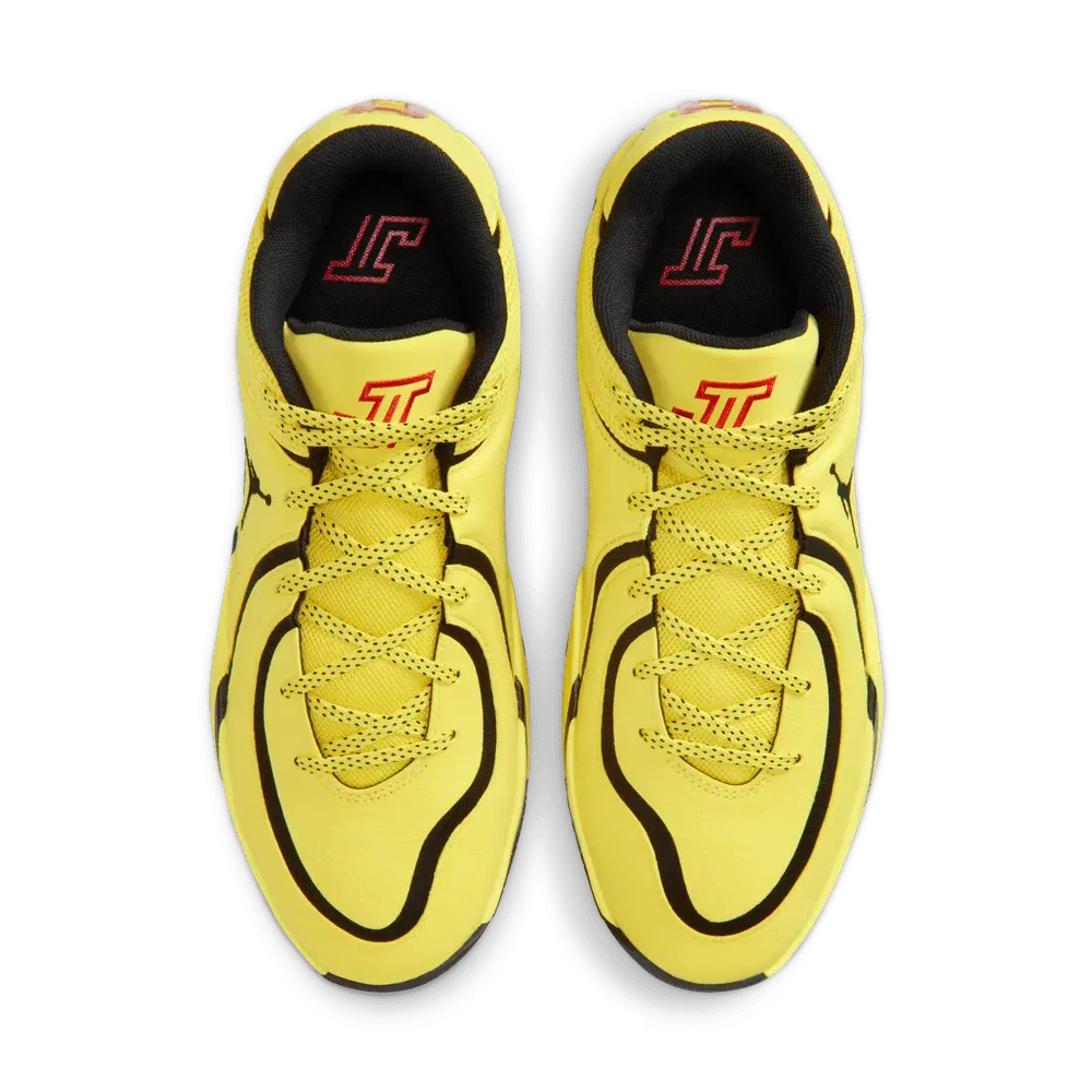 Le modèle est accompagné de finitions en rouge, pour faire ressortir le logo « JT » sur la languette mais aussi le gros numéro zéro du joueur figurant sur le talon. Pour rappel, la semelle intermédiaire est équipée d’une mousse en Cushlon 3.0 et d’un amorti « Zoom Air » sous l’avant du pied.