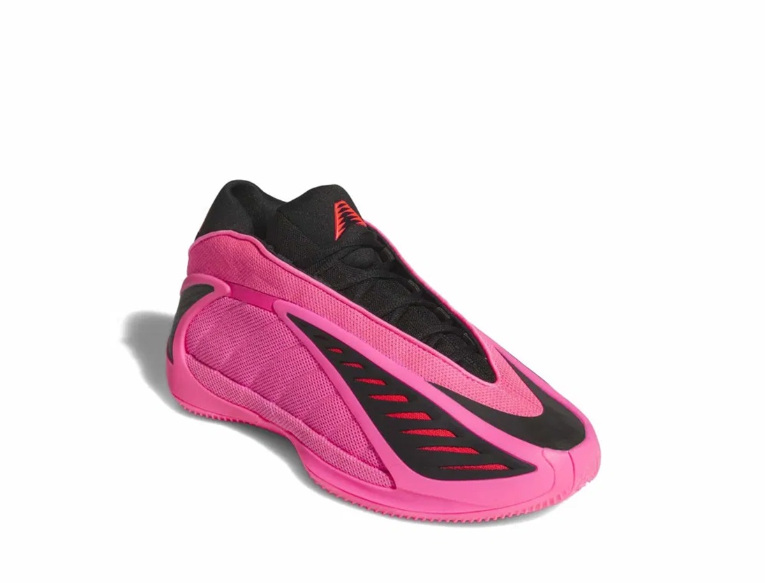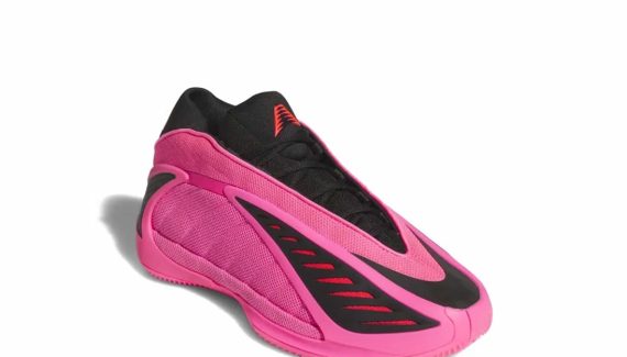 On retrouve tout d’abord la version “Black&Yellow”, dévoilée la semaine dernière, habillant la deuxième chaussure signature d’Anthony Edwards d’un ensemble noir et jaune. Adidas a pris encore plus d’avance pour le coloris “VDay”, qui célèbre le 14 février, jour de la Saint-Valentin avec une tige et une semelle en rose et noir, assortie de quelques touches d’orange, pour faire ressortir le logo du joueur sur la languette et les trois bandes sur le talon.