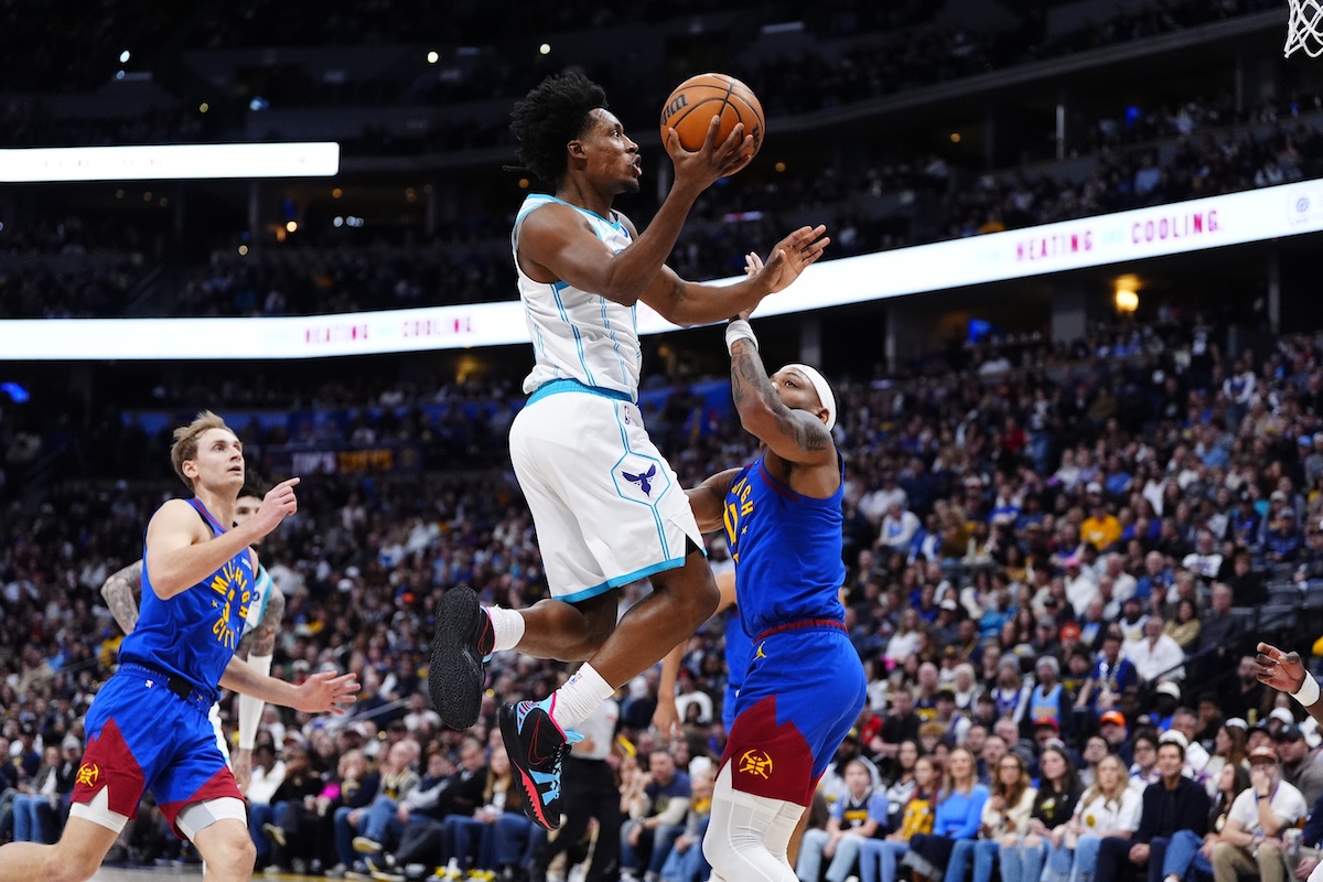 Et cette nuit à Denver, alors qu’ils venaient de perdre de 20 points la veille sur le parquet des Warriors, ils l’ont emporté de 23 points. Certes, face à une équipe privée de la majorité de ses titulaires (Nikola Jokic, Aaron Gordon, Cam Johnson…), mais quand même. Les joueurs de Charlotte ont limité leurs homologues de Denver à leur plus petite prestation offensive (égalée) de l’année : 87 points.