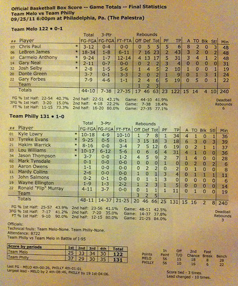 Hakim Warrick avait annoncé la couleur lorsqu’il avait décidé de monter une Philly Team pour défier les stars de la Melo Team. Et l’ailier-fort des Suns avaient vu juste puisque lui et ses coéquipiers s’imposent 131-122 dans ce qui est pour l’instant le match le plus intéressant de l’intersaison.