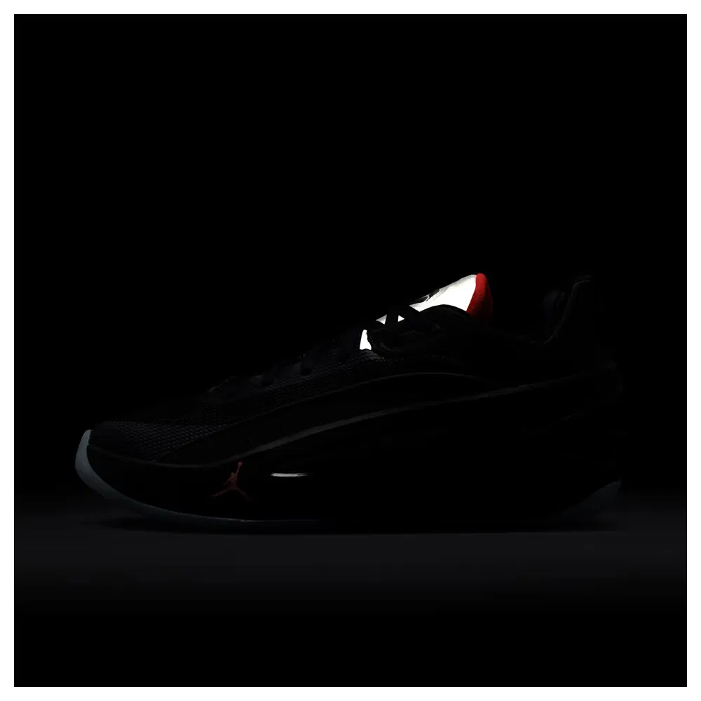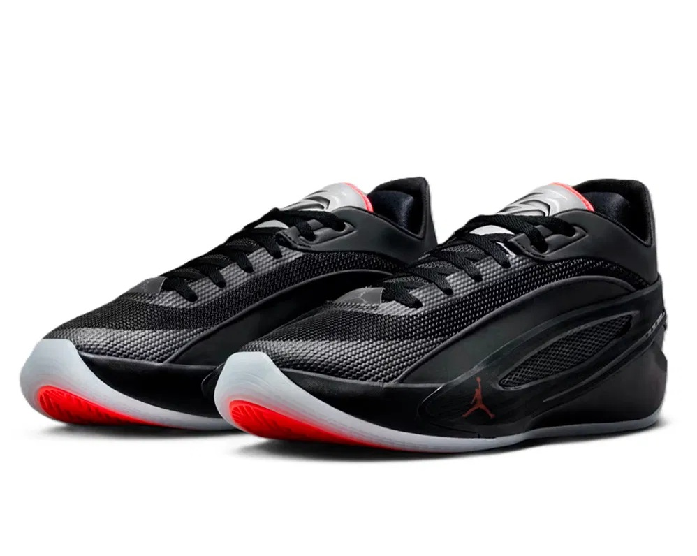 Après la “Viper Edge” et la “Venom”, voici la version baptisée « Black Metallic ». Celle-ci se distingue par sa languette grise qui brille dans le noir, sur laquelle on retrouve le logo du joueur, en noir, et des contours en rouge. La tige entièrement noire est assortie d’un petit « Jumpman » rouge à l’avant du pied.
