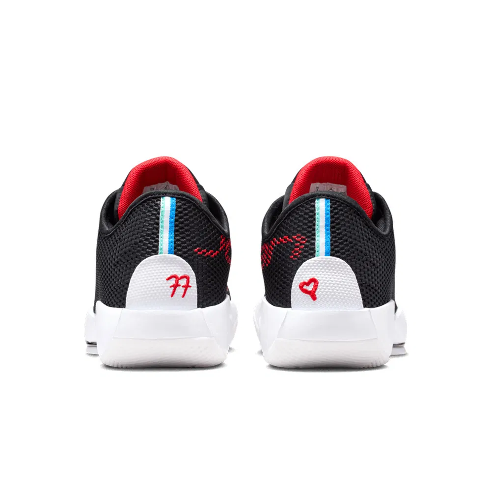 Après la Jordan Tatum 4 « Chicago », c’est au tour de la Jordan Luka .77, le modèle signature alternatif de Luka Doncic de s’offrir un coloris « Bred », contraction de « Black » et « Red ». La tige principalement noire est en effet complétée par des finitions en rouge, sur la languette, où figure le logo « LD » du meneur des Lakers où sur le « Jumpman » à l’avant du pied. La mention « Jordan » sur la partie intérieur ressort également en rouge, tout comme le numéro 77 et un cœur sur le talon. Les touches de blanc apparaissent sur le talon, l’avant du pied et au niveau de la semelle.