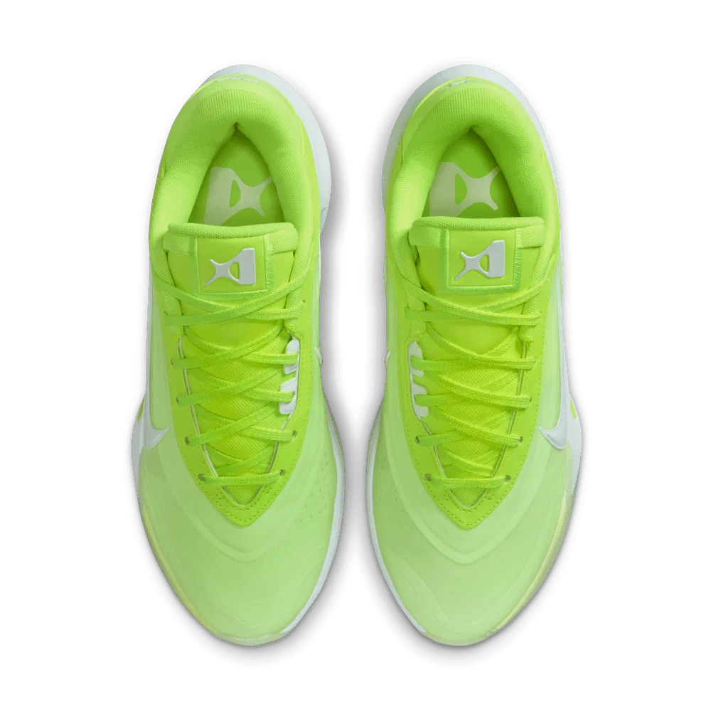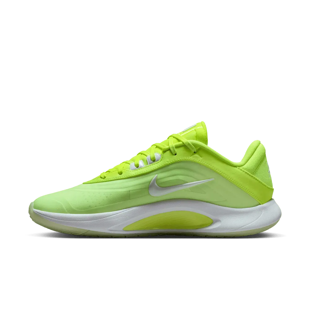 La tige couleur citron vert est assortie de finitions en gris, pour habiller le « Swoosh » latéral, ou encore le logo et la signature de la joueuse, respectivement sur la languette et le talon. La semelle, équipée de mousse Cushlon ST2 au niveau intermédiaire, complète l’ensemble en blanc et vert. Pour rappel, le revêtement extérieur présente des motifs repensés pour mieux accompagner les changements de direction. L’objectif de la Nike A’One est clair : s’ériger en référence en termes d’amorti, d’adhérence et de maintien, le tout à un prix « abordable ».