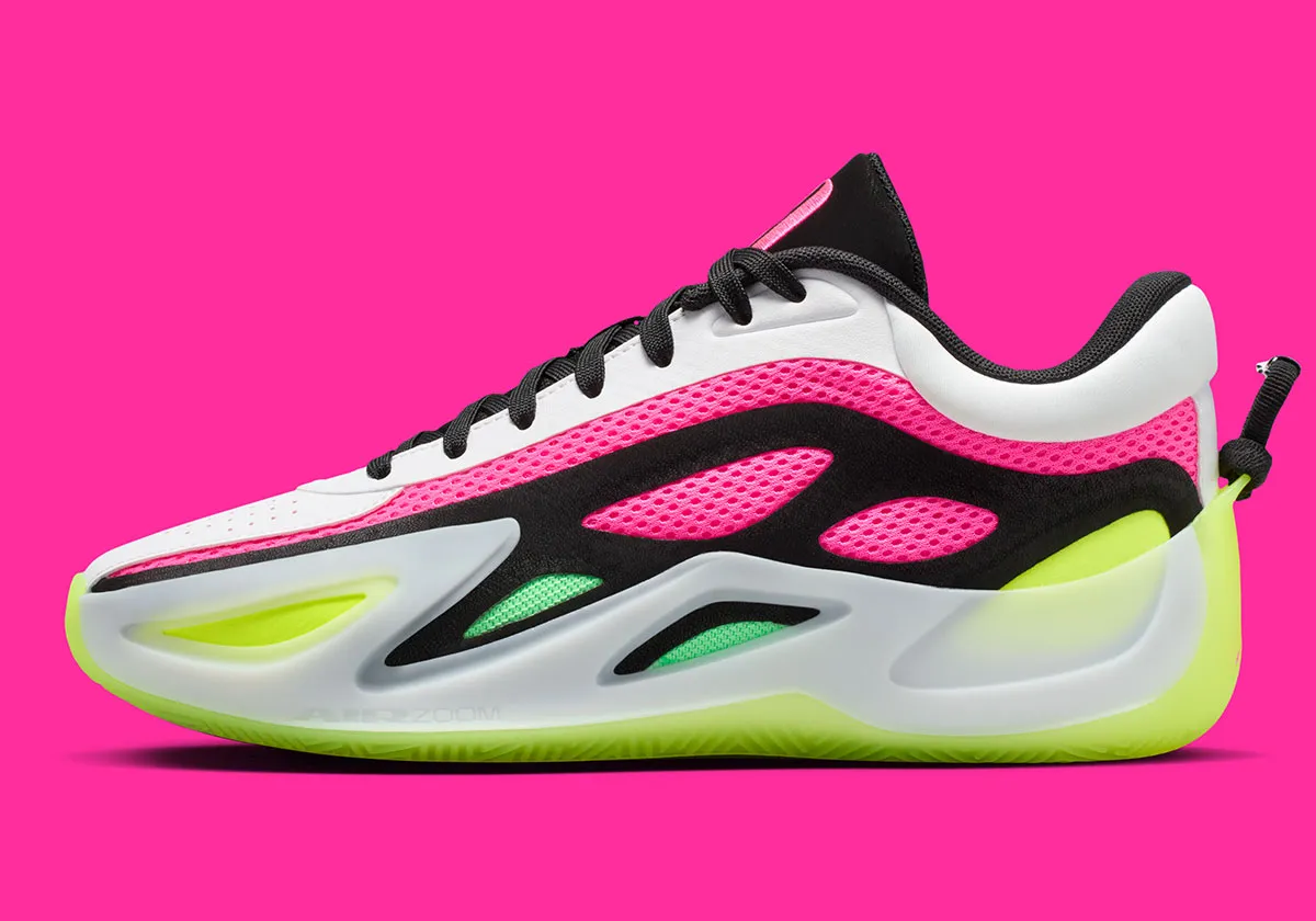 Le petit plus se situe au niveau du talon, où on peut accrocher un élastique à cheveux fourni avec la paire. Le premier coloris devrait être ce mariage de rose, jaune fluo et assorti de noir et blanc. Sa sortie officielle est annoncée pour le 20 février. Son prix devrait avoisiner les 115 euros.
