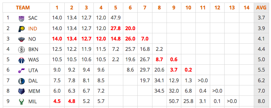 Les Pelicans (14-40) sont un cas à part car leur choix de Draft ira aux Hawks, et ils n’ont finalement aucun intérêt à participer à cette course inversée. Ce qui n’est pas le cas des Kings (12-41), des Pacers (13-39), des Nets (13-37), des Wizards (14-36) voire du Jazz (16-36), des Mavericks (19-32) et des Grizzlies (20-30)…