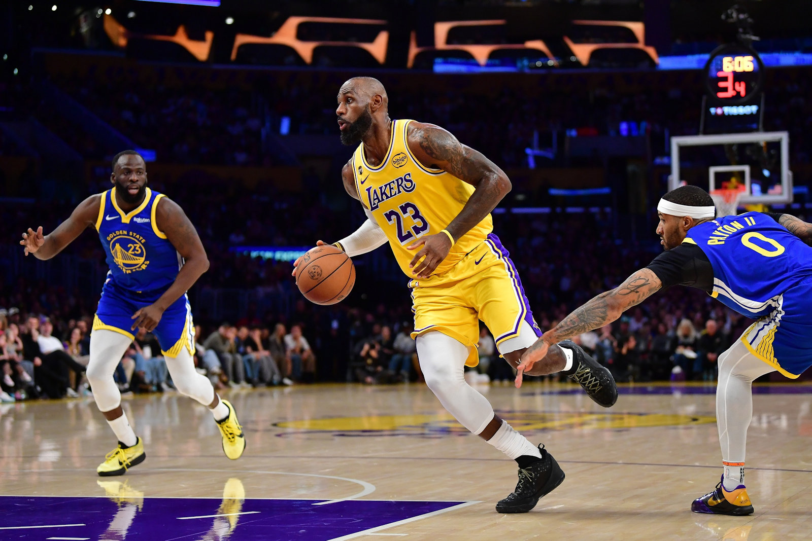 Malgré un 2/17 à 3-points pour débuter le match, les Warriors prennent les devants en provoquant cinq pertes de balle des Lakers et grâce à un Gary Payton II au four et au moulin (17-10). Austin Reaves (16 points, 8 passes, 5 rebonds) et le néo-Laker Luke Kennard (10 points) réveillent leur équipe avec un 8-0, mais, après de nouveaux ballons perdus, Golden State se régale au rebond offensif pour virer en tête à la fin du premier quart-temps (21-20).