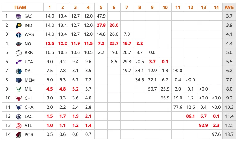 Hormis les Pelicans (15-40) qui n’ont pas d’intérêt à « tanker » puisque leur choix ira aux Hawks, les autres clubs ont tout intérêt à maximiser leurs chances de finir dans le Top 3 de la Draft 2026. Ça concerne les Kings (12-43), les Pacers (14-40), les Wizards (14-38), les Nets (15-37) voire les Mavericks (19-34) et les Grizzlies (20-32).