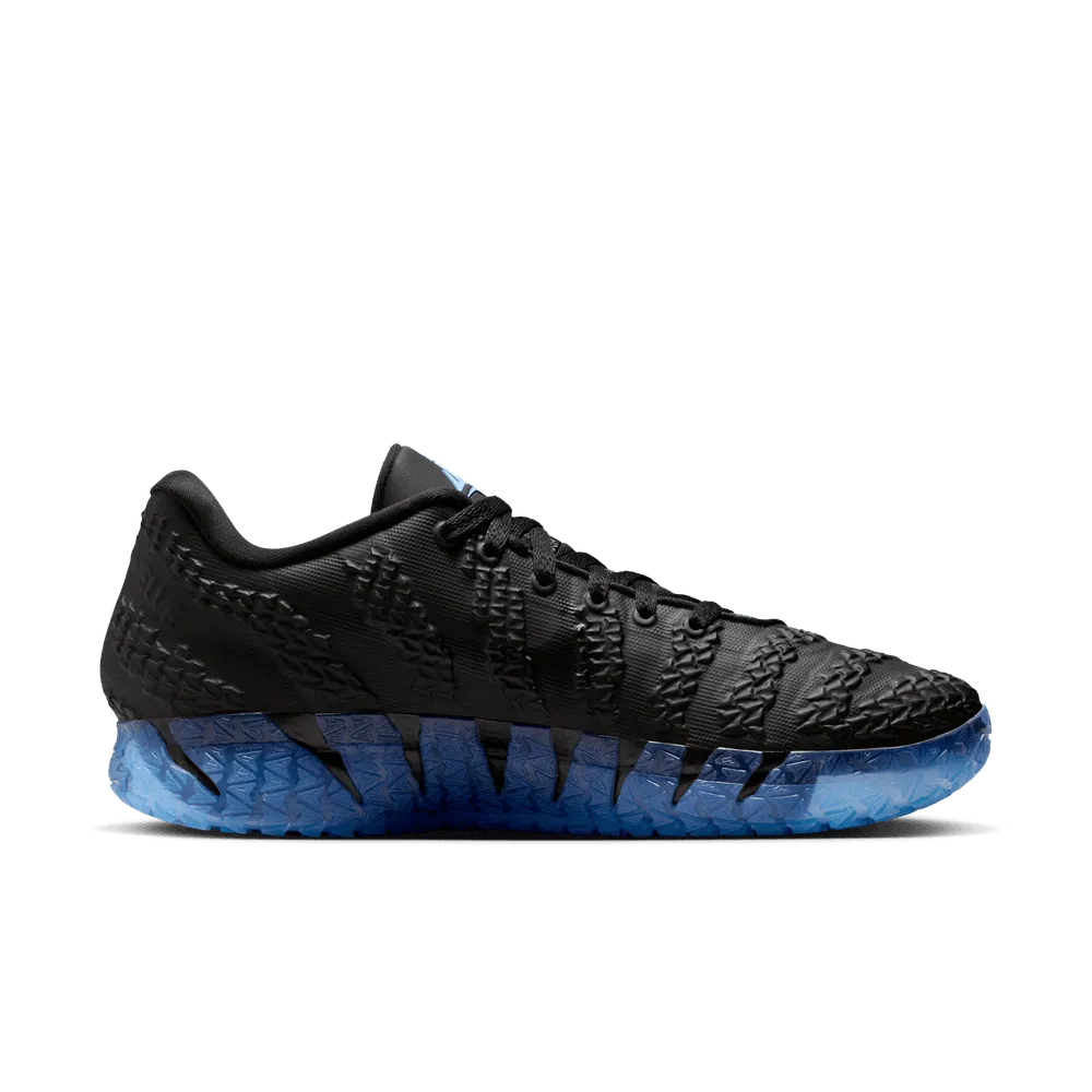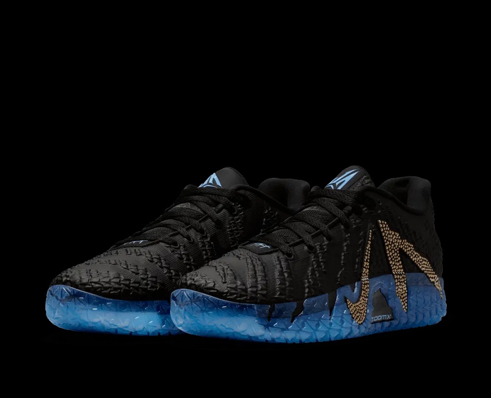 Pour la troisième année de suite, la chaussure signature de Ja Morant et la marque de luxe Swarovski ont poursuivi leur collaboration pour concevoir une Nike Ja 3. Le modèle en envoie (encore) plein les yeux avec sa tige noire délaissant l’assemblage mesh et TPU pour du 100% cuir, une semelle extérieure teintée de bleu translucide et des pierres Swarovski sur le motif JA présent sur un côté de chaque chaussure.