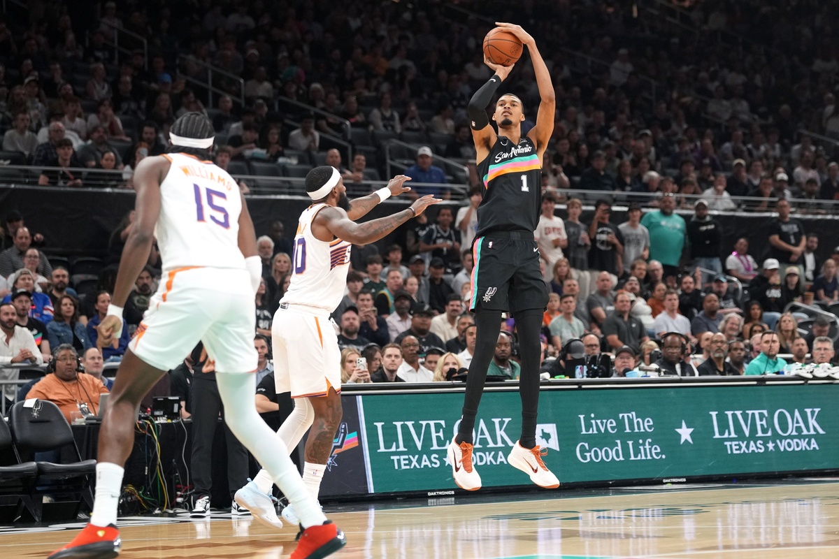 Retour à la compétition autoritaire pour les Spurs. À Austin pour leur premier match depuis le « All-Star break », les partenaires de Wemby ont enregistré une 7e victoire de suite en s’imposant largement (121-94) face à des Suns qui ont perdu Devin Booker (seulement neuf minutes de jeu), touché à la hanche.