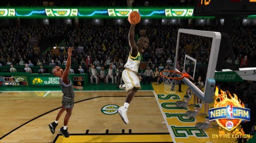 Même si NBA Live (ou NBA Elite) est abandonné temporairement, EA Sports n’en oublie pas le basket puisque l’éditeur sort aujourd’hui NBA Jam : On Fire Edition.